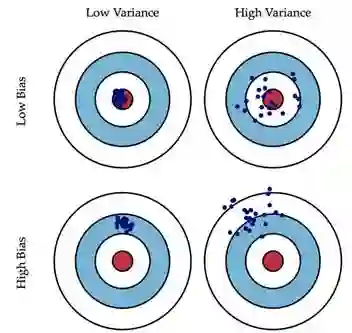 机器学习模型的Bias和Variance分析, Understanding the Bias-Variance Tradeoff中的一副图生动形象地为我们展示了偏差和方差的关系: