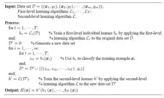 Wolpert在1992年的一篇论文中对 stacked generalization进行了介绍 , stacked generalization背后的基本思想是使用大量基分类器,然后使用另一种分类器来融合它们的预测,旨在降低泛化误差。