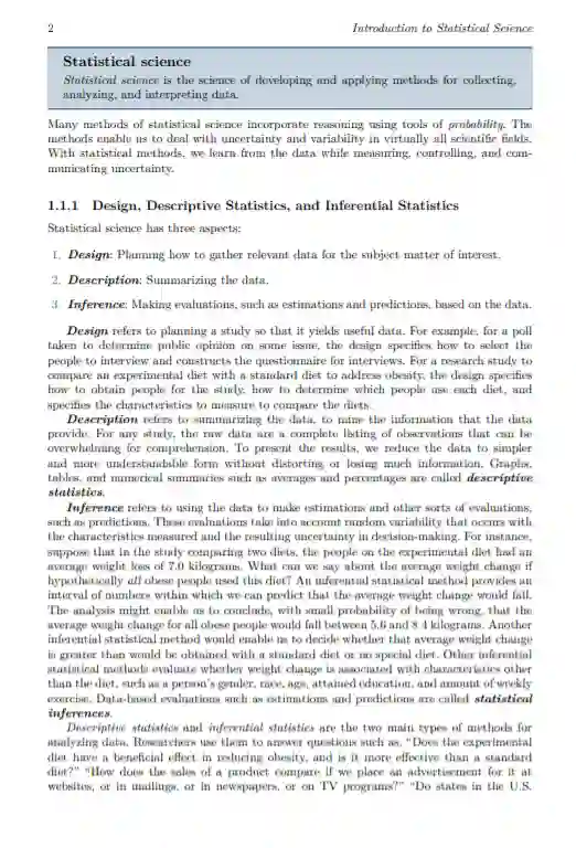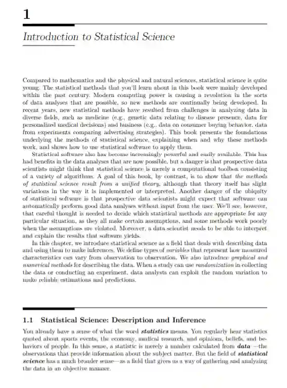 这本书还介绍了现代主题,通常不出现在数理统计文本,但与数据科学家高度相关,如贝叶斯推理,非正态响应的广义线性模型(例如,逻辑回归和泊松loglinear模型),和正则模型拟合。将近500个练习被分为“数据分析与应用”和“方法与概念”。附录介绍了R和Python,并包含了奇数号练习的解决方案。本书的网站扩展了R, Python和Matlab的附录,以及来自示例和练习的所有数据集。
