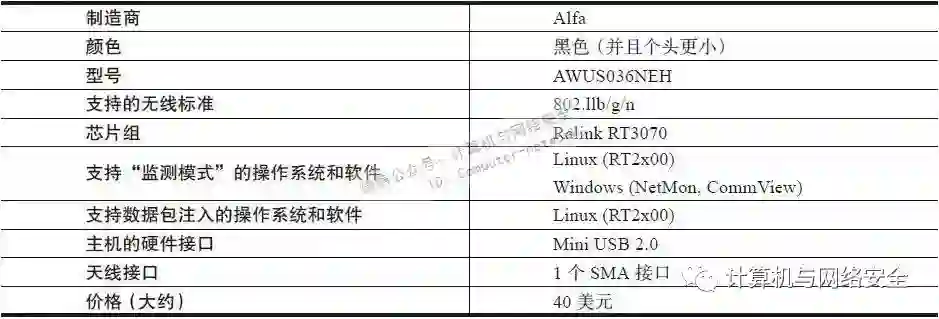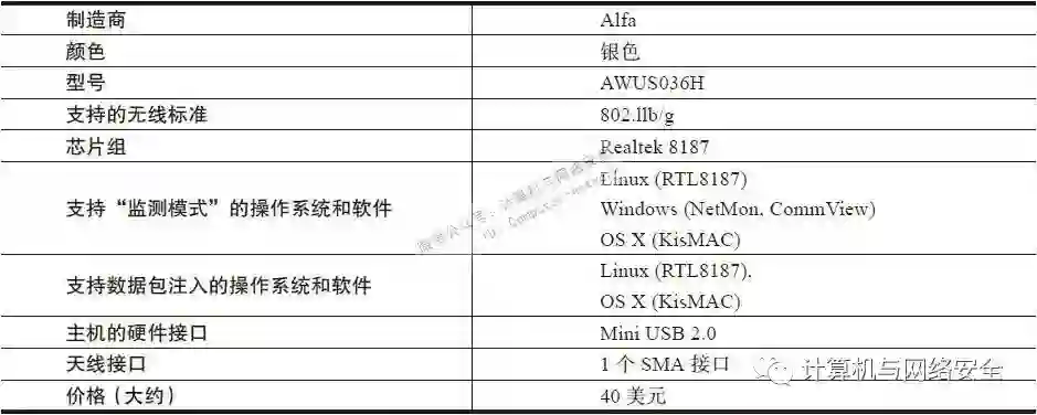 表2 AlfaAlfa AWUS036H无线网卡的参数
