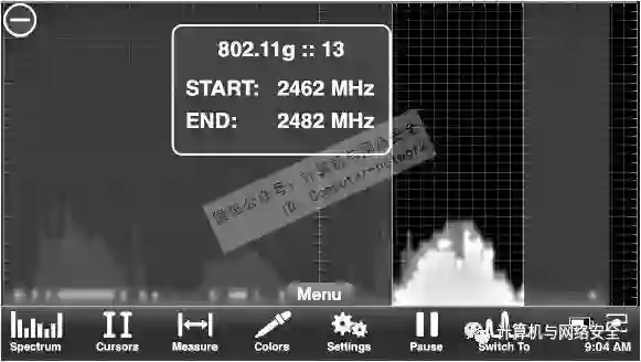 测量给定频率上的能量值的工具称为“频谱分析仪”(spectrum analyzer)。独立的频谱分析仪价格数千美元,是由专业工程师使用的,之所以这么贵,是因为这些频谱分析仪可以在很大的跨度范围上进行扫描。然而,802.11只是运行在2.4GHz和5GHz的波段上,所以很多公司看到这一商机,就推出一些低端的频谱仪,这些频谱仪只对这两个范围进行检测,以便对802.11中产生的噪声干扰、信号冲突等问题进行测试。