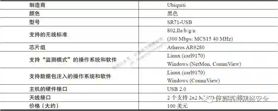 SR71-USB(见表5)是一款较好支持Windows操作系统的无线网卡(如图11所示)。如果您正在寻找一块既可以稳定地运行在Windows上,又能同时提供数据包注入功能,还能在监测模式下监测所有基于802.11标准的通信数据包的无线网卡,那么就要考虑SR71了,配上“CommView for Wi-Fi”软件就可以完成上述所有需求。这种组合要比在CACE系统上,配上“AirPcap NX”软件的组合,便宜得不是一星半点。