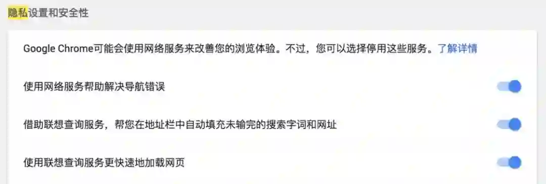 Google 的某些搜索结果可以直接显示在地址栏,在地址栏就能进行简单的计算和转换,临时应急一下还是挺方便的。若要用到此功能,需要确保打开隐私设置里的联想查询服务: