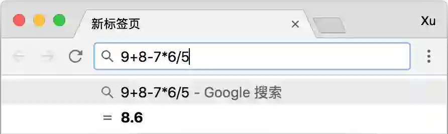 数学计算:在地址栏中输入算式,下面会实时显示计算结果