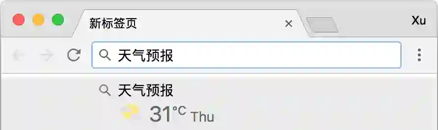 查询天气:直接在地址栏输入「天气预报」或者「weather」,下面就会显示所在城市的天气信息