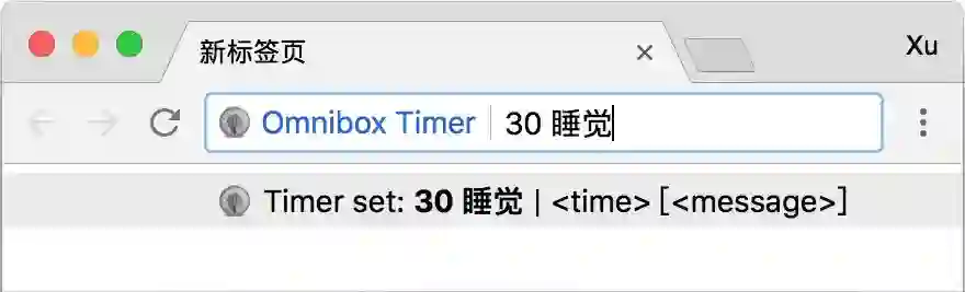 Omnibox Timer 是一款非常实用的定时提醒插件。在地址栏输入关键词「tm」+ 空格来激活它,接着输入时间,代表多久以后提醒,再空格输入提醒的文字内容,最后回车即可。比如下图这样,「30 睡觉」就代表30分钟后会提醒你睡觉。