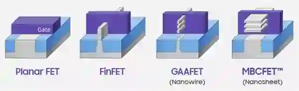在2nm工艺上,台积电并没有直接使用三星规划在3nm工艺上使用的GAAFET (环绕栅极场效应晶体管),也就是纳米线(nanowire),而是将其拓展成为MBCFET(多桥通道场效应晶体管),也就是纳米片(nanosheet)。