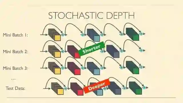 方法:在训练的每一个iteration前,在resnet的每一个Residual Unit上,我们只需随机扔一枚硬币,判定这个Unit是否被消去(去除非线性stack只保留直连)。最后再做前向和后向的传播。这样,我们每一次都相当于在训一个浅一点的网络,最后这个大网络也能收敛,效果不错。