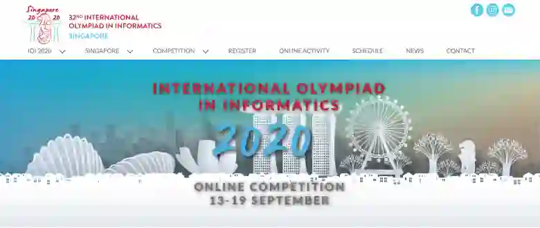 2020 年 9 月 13 日-9 月 19 日, 国际信息学奥林匹克竞赛(International Olympiad in Informatics,IOI)在新加坡举行。