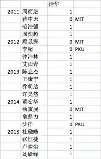 我们统计了过去 10 年的同学去向发现,整体而言,在 2011 年到 2020 年里,40 人中,4 人选择去了 MIT,6 人选择了北大,其余人去了清华。