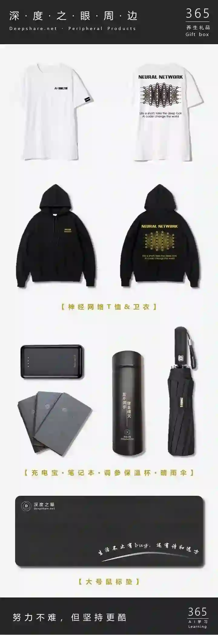 按学习任务要求完成全勤打卡且排名前20的同学,我们将赠送你深度之眼定制周边福利!