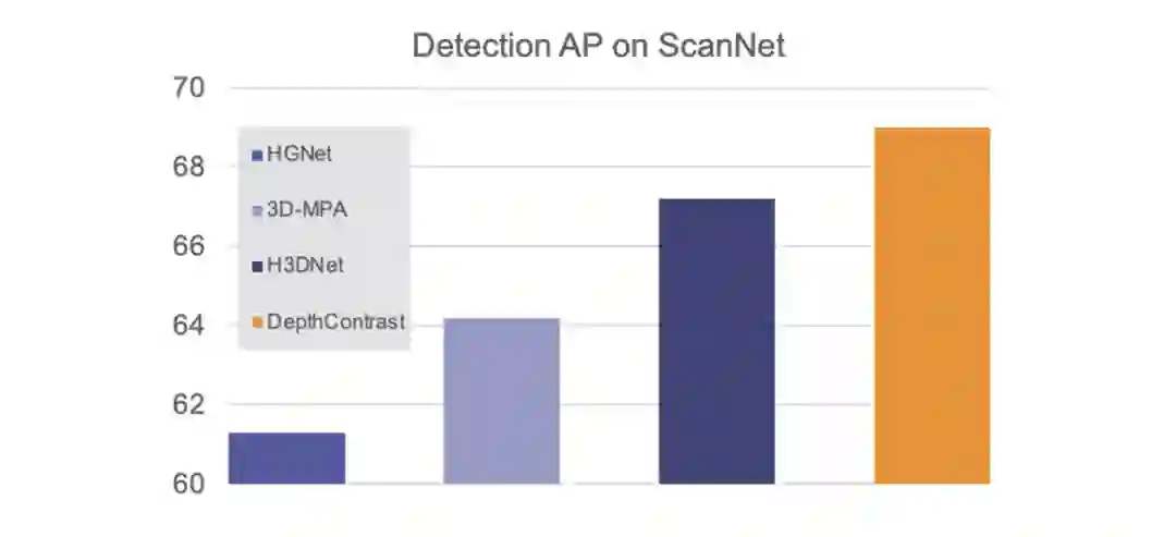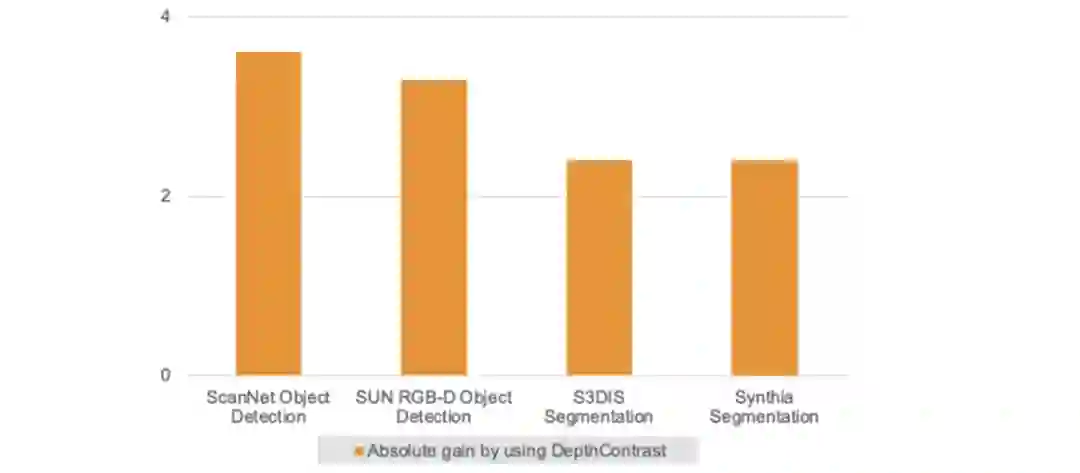 DepthContrast的功能在形状分类、对象检测和分割等任务的各种3D基准测试中提供了增益。