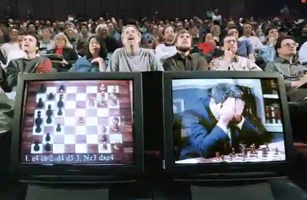 1996 年 2 月 10 日,超级电脑 Deep Blue 首次挑战国际象棋世界冠军 Kasparov ,但以 2:4 落败。比赛在 2 月 17 日结束。其后研究小组把 Deep Blue 加以改良,1997 年 5 月再度挑战 Kasparov ,比赛在 5 月 11 日结束,最终 Deep Blue 电脑以 3.5:2.5 击败 Kasparov ,成为首个在标准比赛时限内击败国际象棋世界冠军的电脑系统。IBM 在比赛后宣布 Deep Blue 退役。