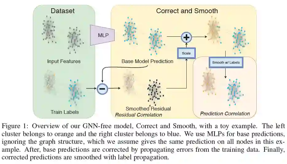 摘要:图神经网络(GNN)是图学习的主要技术。但是,对于GNN为什么取得成功以及对性能是否好的必要性了解还很少。对于许多标准的transductive节点分类基准,通过将忽略图结构的浅层模型与两个探索标签结构相关性的简单后处理步骤结合起来,我们可以超越或达到现存最新好GNN模型的性能:(i)“误差相关性”,它在训练数据中分散剩余的错误来纠正测试数据中的错误;(ii)“预测相关性”,它使对测试数据的预测变得平滑。我们称此总体过程为“纠正和平滑(C&S)”,后处理步骤是通过对早期基于图的半监督学习方法中标准标签传播技术进行简单修改而实现的。我们的方法在各种基准上都超过或接近了最好的GNN的性能,而参数却很少,运行时间也快了几个数量级。例如,我们以137倍的参数减少和超过100倍的训练时间超过了OGB-Products数据集上最好的GNN性能。我们方法的性能着重于如何将标签信息直接整合到学习算法中(就像传统技术一样),从而获得简单而可观的性能提升。我们还可以将我们的技术整合到大型GNN模型中,从而获得适度的提升。我们的OGB结果代码位于: