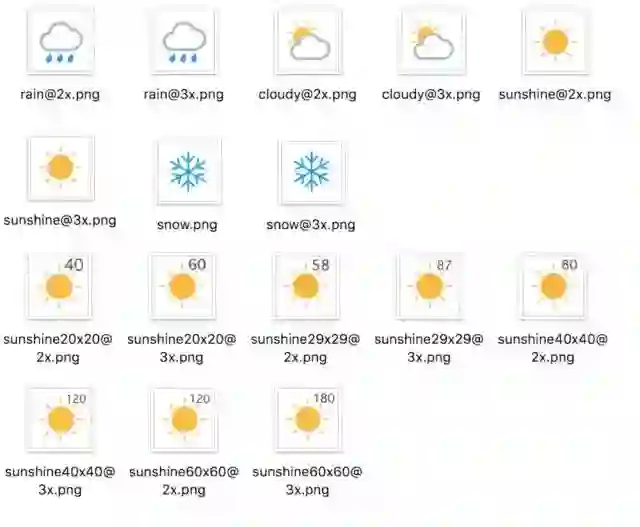 这里每种icon我只放了一个,如果有多个尺寸的icon,也可以直接全放进去: