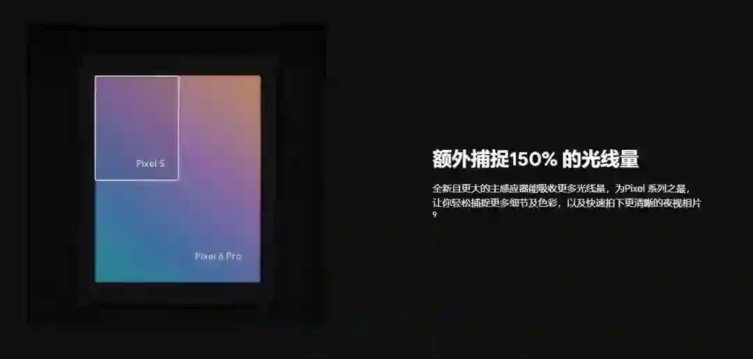 是的,Pixel 终于换主摄了。Pixel 6、6 Pro 的这枚主摄传感器是 1/1.31 英寸的三星 GN1,虽然不是今年旗舰手机最大底的传感器,但比起打磨了三代的 1/2.55 英寸 IMX363,完全是鸟枪换大炮的既视感。