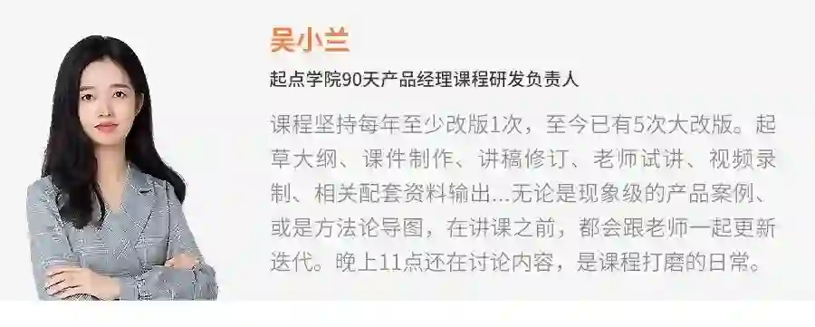 这将确保:通过一次课程学习,你不仅能掌握产品工作中的核心技能,且你在学习和工作中遇到的问题,都会有专业的、扎根一线的资深产品导师为你解答。