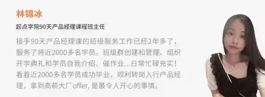 我们认为,选用带班导师一定要选大厂在职多年的产品经理,他们不仅拥有丰富的产品工作经验,且依然奋斗在一线积累着更加实用和有效的方法论。