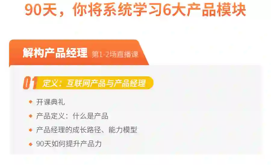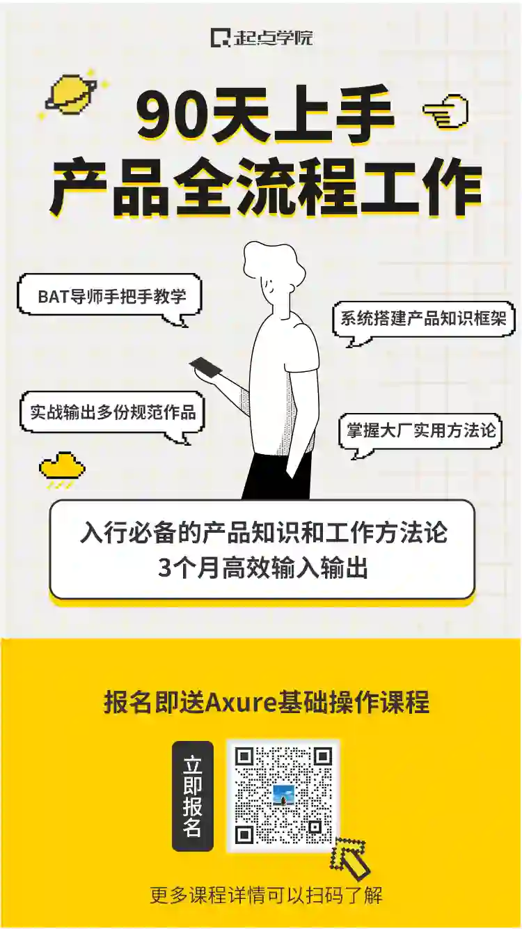 这里向你推荐一门由腾讯课堂&起点学院联合打造的【90天产品经理实战班】,能够帮你构建产品知识体系,根据大厂的产品岗位要求,针对性地训练产品经理必备的能力。