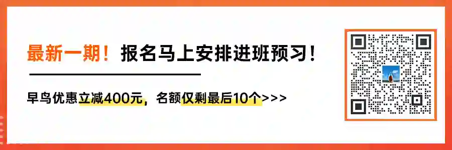 50期班级即将在12月30日开课啦!现在,早鸟报名课程可享立减400元优惠!仅有10个名额!