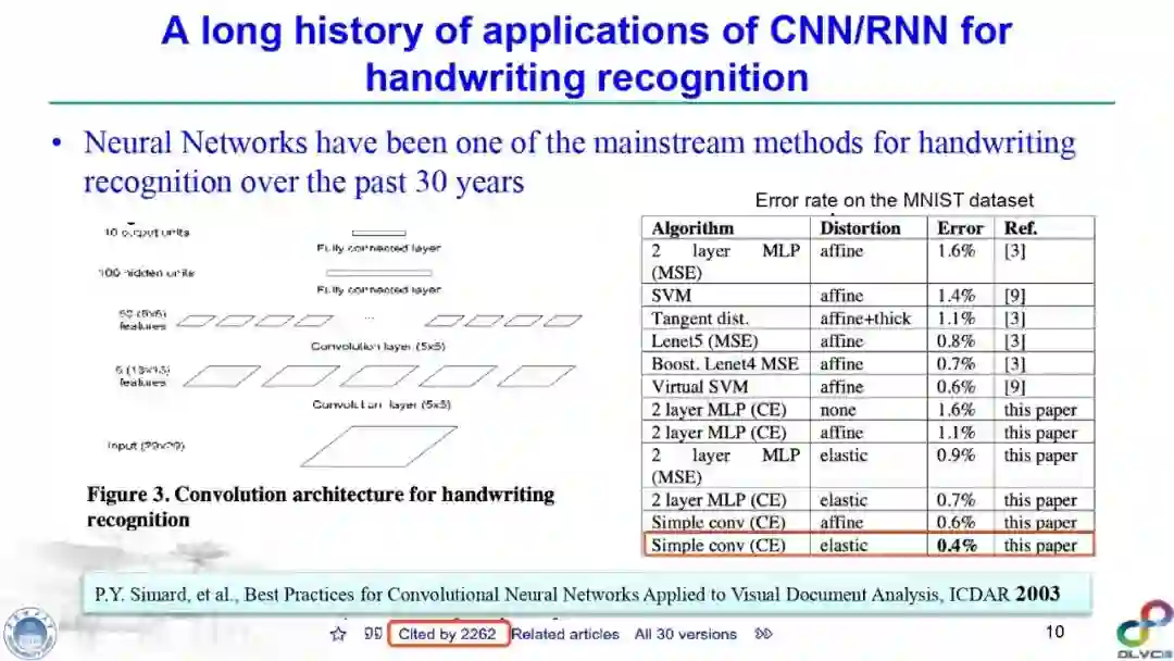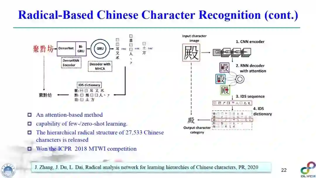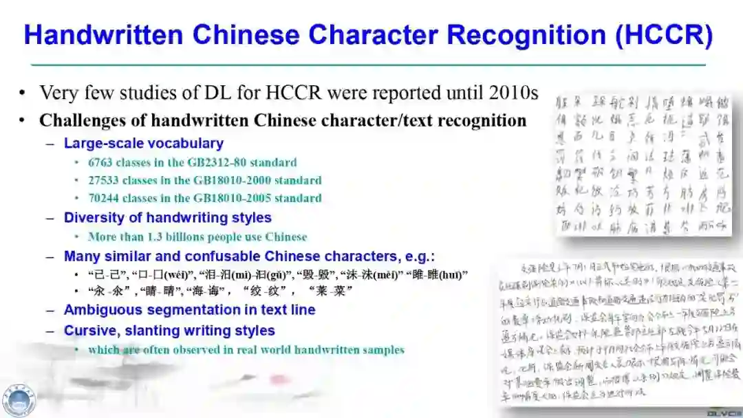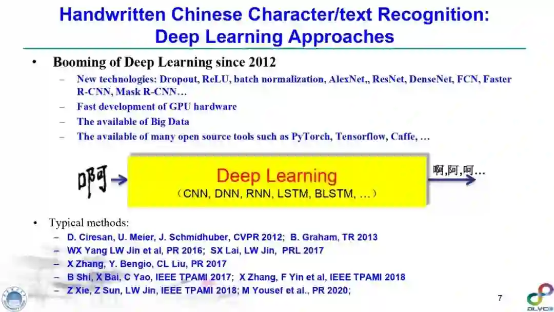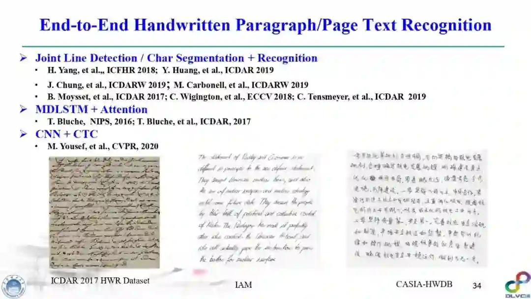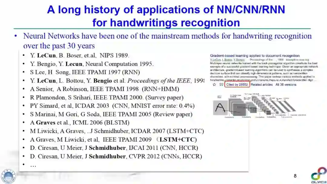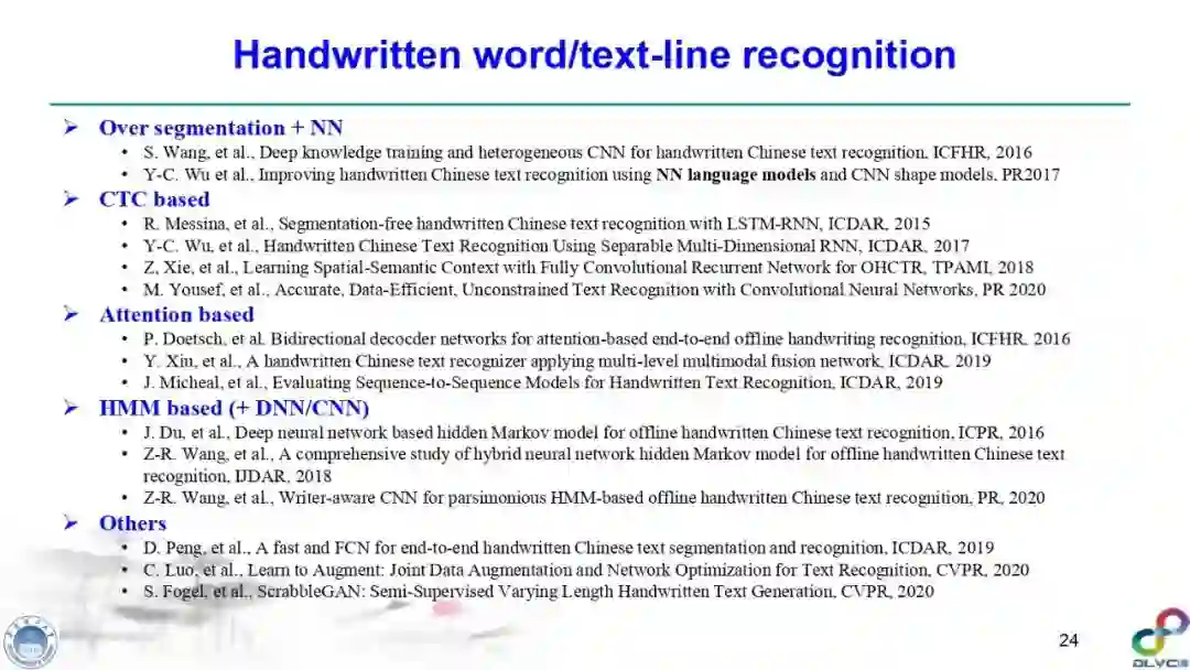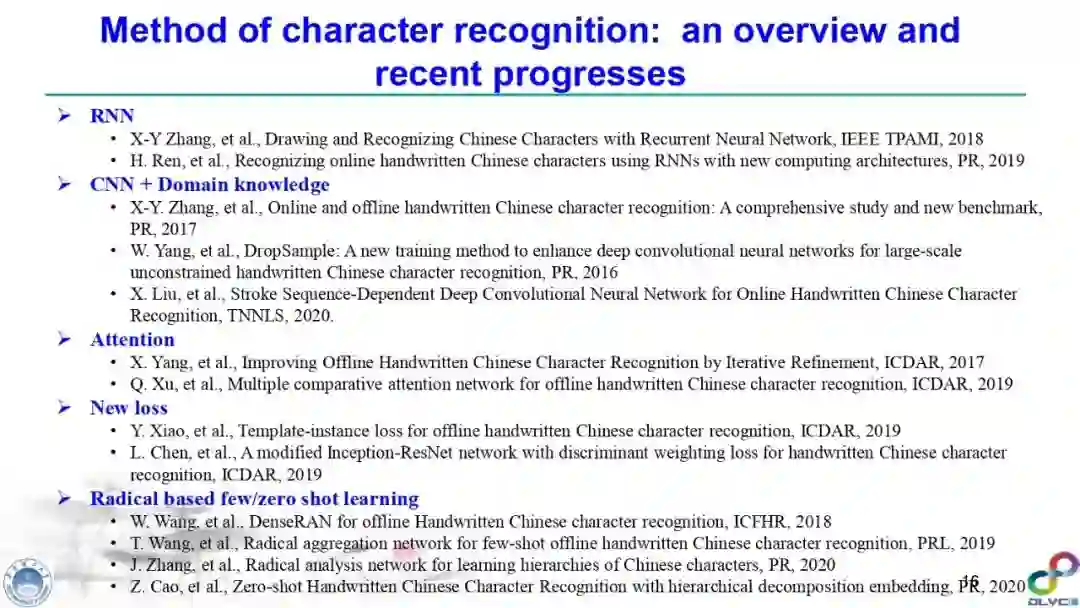 金老师对手写字符识别(尤其是汉字手写识别)、签名识别、笔迹鉴定、场景文本检测与识别进行了高质量的梳理,指出深度学习技术在该领域发挥的重要作用,并对其缺点(比如易于攻击等)进行了详细综述,并指明了未来可能的研究方向。