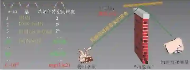 图1 量子多体物理中的“指数墙”困难(参见W. Kohn 1998 年的Nobel Lecture: Electronic structure of matter——wave functions and density functionals)