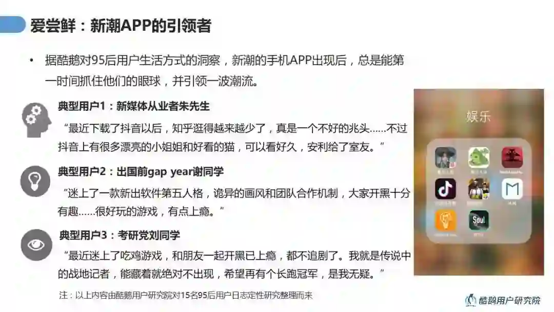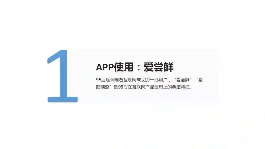 95后是伴随着互联网成长的一批用户,“爱尝鲜”“紧跟潮流”是95后在互联网产品使用上的典型特征。