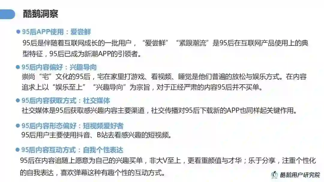 本期酷鹅用户研究院开展95后内容消费研究,发布《兴趣导向:95后内容消费洞察报告》为您揭晓。