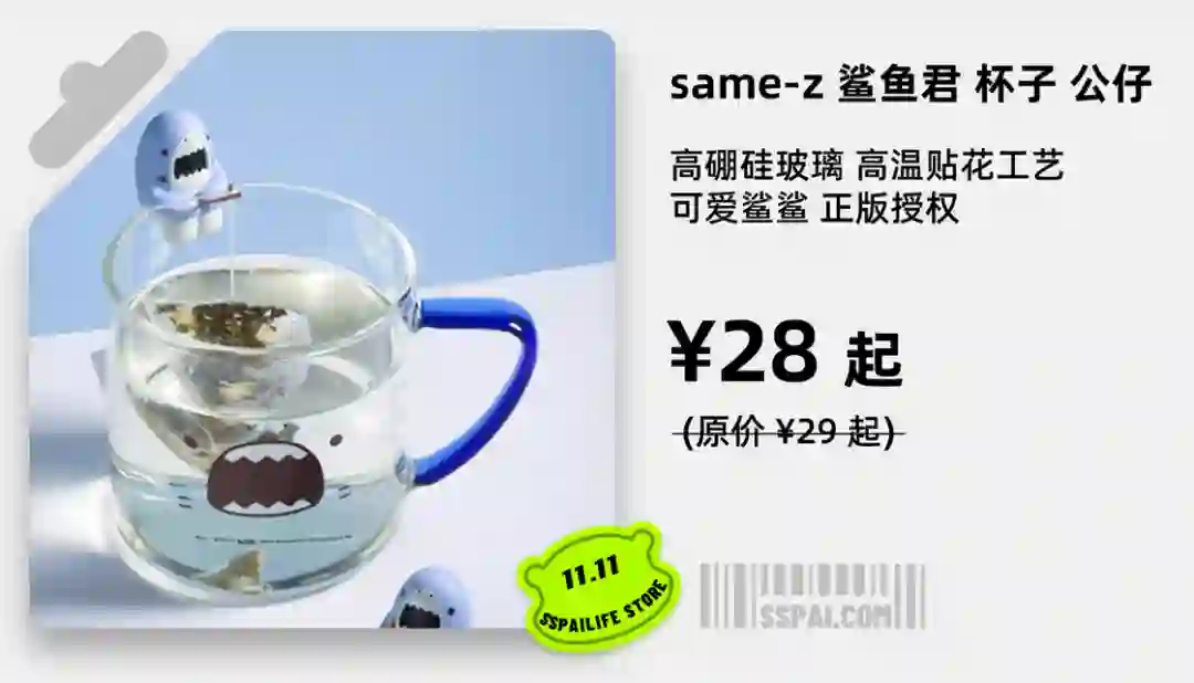 【淘宝】https://m.tb.cn/h.U5pPL0S?tk=8Afud09mCQY CZ0001 「【少数派】same-z 鲨鱼君玻璃杯 杯缘公仔 鲨杯鲨钓七夕可爱礼物」