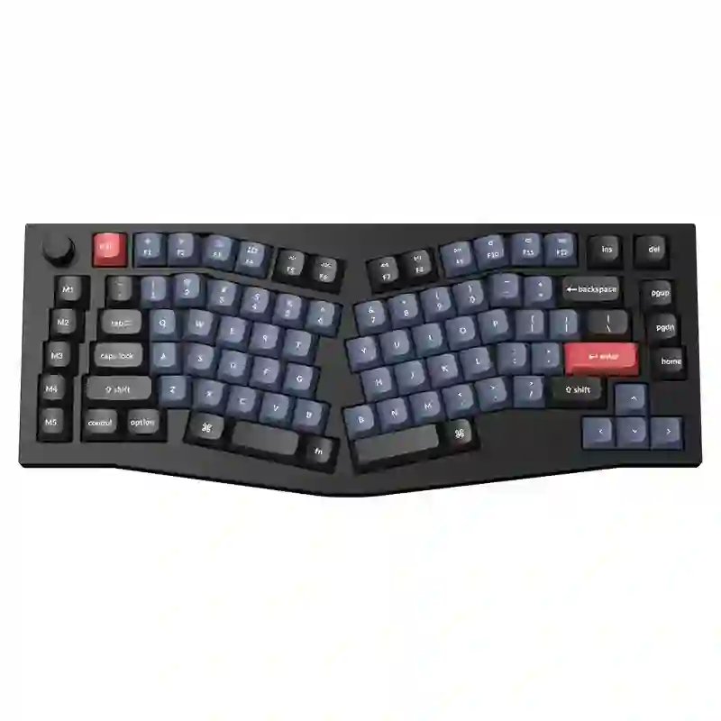 Keychron Q10 融合了 Alice 布局并采用了 75% 配列的键盘尺寸,它有着用于编程的额 外宏键和左旋钮设计。作为一款完全可定制的键盘,Q10 拥有和 Q1 一致的全金属 CNC 加工铝制机身、双垫圈设计等。通过这台独特符合人体工程学的「自由」键盘,为你的生产力更添一把劲。