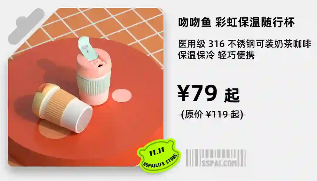 【淘宝】https://m.tb.cn/h.UfG5iZb?tk=Dcryd09mDnt CZ0001 「【少数派】吻吻鱼 彩虹保温随行杯 轻巧便携 保温大容量360°防漏」