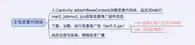 l 监听应用安装、网络改变,进而调用子包,执行恶意行为;