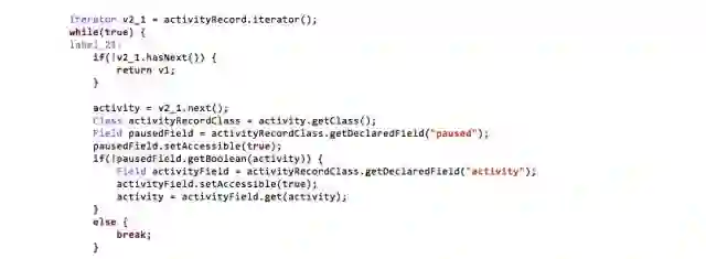 为了能够在设备解锁,任意应用界面弹窗,病毒需要获取当前运行Activity实例。“DowginCw”通过反射获取ActivityThread中所有的ActivityRecord,从ActivityRecord中获取状态不是pause的Activity。