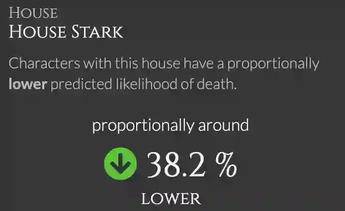 例如,男人死亡概率为60%,而呆在兰尼斯特家里可能会降低50%。综合考虑这两个因素之后,就可以建立一个生存函数。