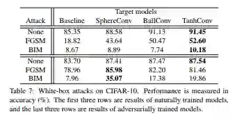 作者在黑盒和白盒的情况下,比较了两种算法的攻击:FGSM和BIM。结果显示其具有更好的防止攻击的能力。