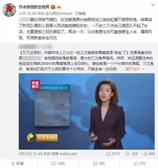 青藏高原上养殖三文鱼?近日,一个磨破嘴皮子的老生常谈,不适合生吃的、经常被商家暗搓搓叫做“淡水三文鱼”的虹鳟鱼,竟然被某媒体大大方方地说成“三文鱼”。
