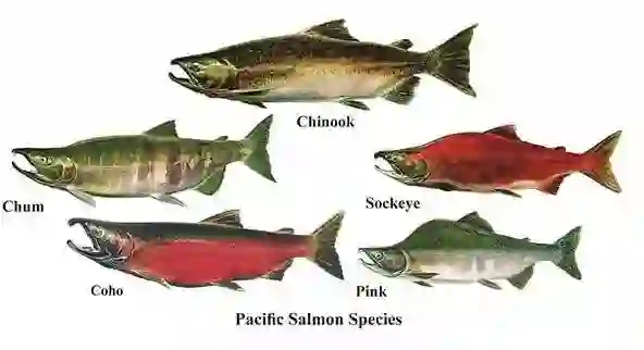 太平洋鲑属的一些种类(繁殖期)。图片来源:arkive.org