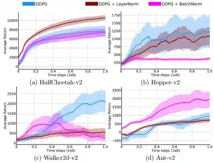早在2016年,就有人讨论过 BN in RL 了,他们的结论也是:RL不需要使用BN,BN带来的性能提升微乎其微,远远不如 soft target update、(和后来的)Generalization Advantage Estimate 等技术。