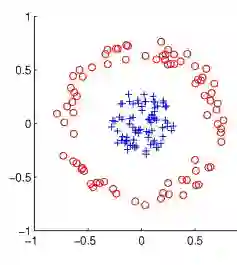 如上图所示,逻辑回归算法要学习线性决策边界。它不能学习下图这种非线性数据的决策边界: