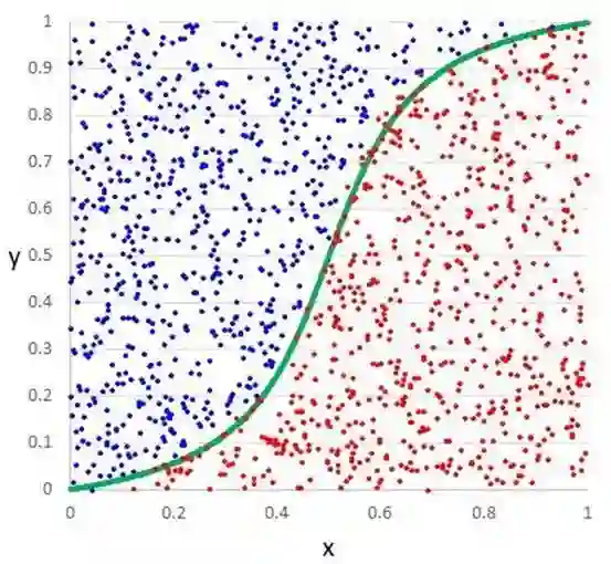 例如,在逻辑回归的情况下,学习函数就是一个试图将两种类别分开的Sigmoid函数。