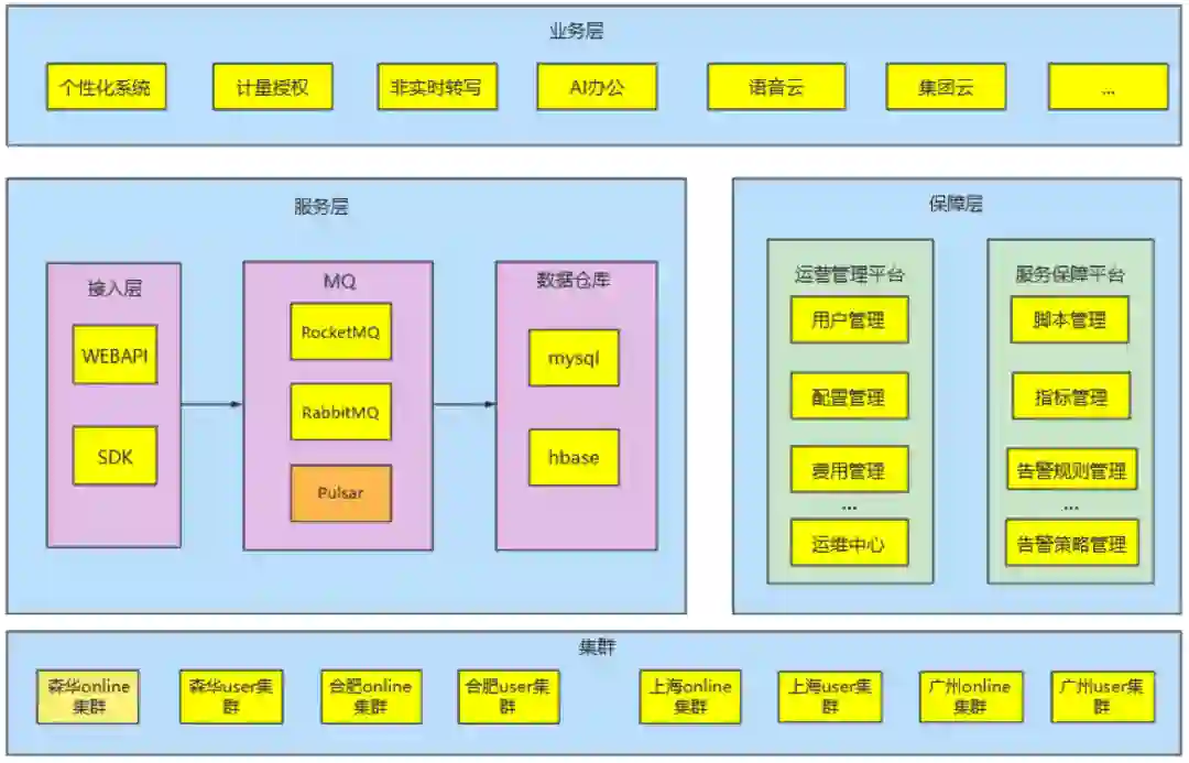 科大讯飞股份有限公司是亚太地区知名的智能语音和人工智能上市企业。自成立以来,科大讯飞一直从事智能语音、自然语言理解、计算机视觉等核心技术研究并保持了国际前沿技术水平。目前讯飞云对接了集团内部的各条业务线,包括个性化、计量授权、语音与字幕的非实时转写、AI 办公、语音云、集团云、开放平台等。其中 Pulsar 主要提供高可用、低延时的消息中间件能力。数据通过 Web API 和 SDK 的方式接入 MQ,经过消息的削峰填谷与上下游打通,从而满足业务快速增长的需求。
