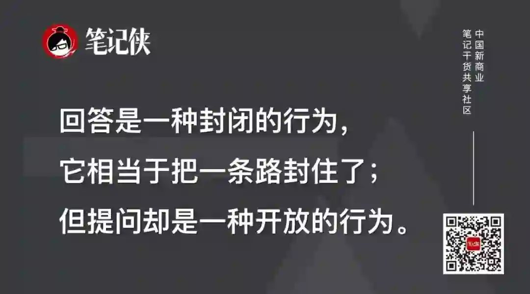 为什么呢?很简单。回答是一种封闭的行为,它相当于把一条路封住了;但提问是一种开放的行为。