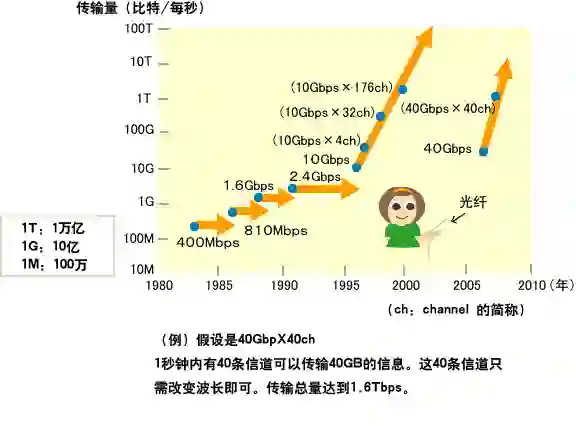 随着整个社会通信量的增加,不断出现了只需1根光纤就能传输更多信息的技术。