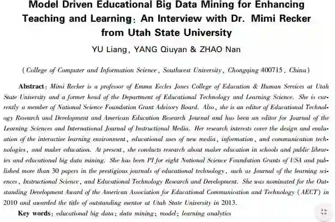 雷克教授:教育数据挖掘通常采用数据科学技术,尝试从教育环境收集的大规模数据中抽取有用的模型和信息。这种研究方式往往没有任何学习与教学理论为基础,是令人担忧的。没有理论,所得到的模型就难以解释。因此,我们认为教育数据挖掘必须基于学习或教学理论,并将其作为模型开发的关键部分。