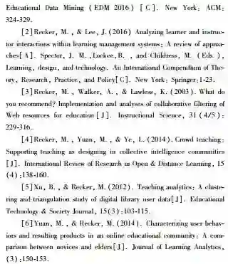 许多应用实例显示,这些技术可以帮助识别那些不及格或有綴学风险的学生,进而确定干预措施。这些技术可以用作“推荐引擎”,向学生推荐特定的课程或课程序列,以及可能适合他们的教学材料。总之,数据挖掘技术开发和应用模型要回答以下问题:学生何时应该进入下一学习主题或课程?什么时候需要干预?什么时候感到无聊或分心?什么时候他们有失败或不能完成课程的风险?在教学数据挖掘的过程中,这些模型也可用于分析教学绩效(即教学分析),识别有效的教学模式并为低效率教学活动提供更有效的教学策略。