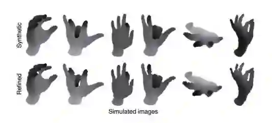 实验结果表明,利用现有的计算机图形学技术,可以合成大规模多样化的仿真图像,但是仿真图像的逼真性不够,直接用来训练深度网络,得到的结果会过拟合仿真图像的细节,在真实场景下应用效果并不理想。通过对抗训练的方式,提高仿真图片的逼真性,使得仿真图片逼近真实图片的水平,用精炼后的图片来训练深度网络,可以得到比较好的效果。甚至由于仿真图片的易获取性,采用大量精炼后的仿真图片训练深度网络,效果优于采用真实图片训练的深度网络,例如,论文中手势深度图片的定量分析实验。