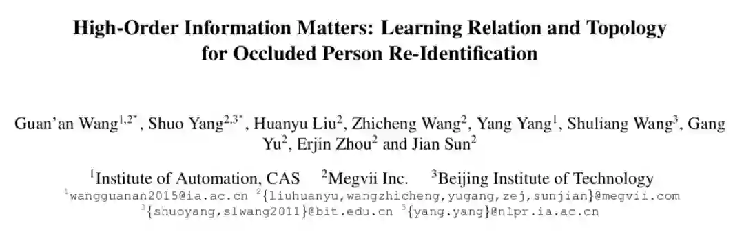论文名称:High-Order Information Matters: Learning Relation and Topology for Occluded Person Re-Identification