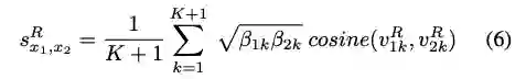 给出两张行人图片(x1,x2),它们基于关系信息相似度可以由公式6计算。K是关键点个数,\beta是对应人体关键关键点的置信度,v经过高阶关系学习优化后,对应的关键点的特征。