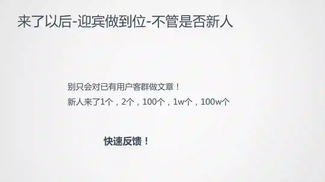 用户来了之后,需要快速反馈,不能只对已有用户群体做文章,当扩展到某一个新的用户群体,必然会有第一个用户,第二个用户,算法无法根据少量用户给出结论,但是当用户达到1万,100万时需要快速的反馈出用户体验不好或用户流失的原因。