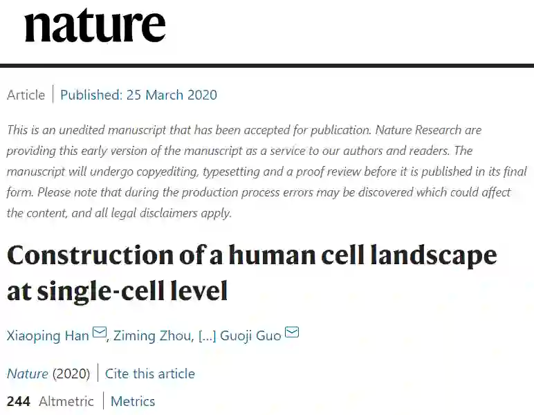 北京时间 3 月 26 日,《自然》在线发表了浙江大学医学院郭国骥团队题为“Construction of a Human Cell Landscape at Single-cell Level”的重磅论文,描述了首个人类细胞图谱,描述了人体主要器官的细胞类型构成。
